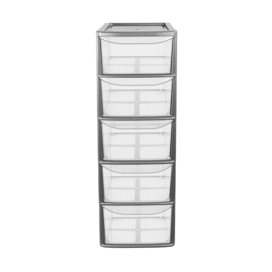 Plastic Storage Unit 5 Drawers 55 Litres Large - Silver & Clear by Thumbs Up Bury