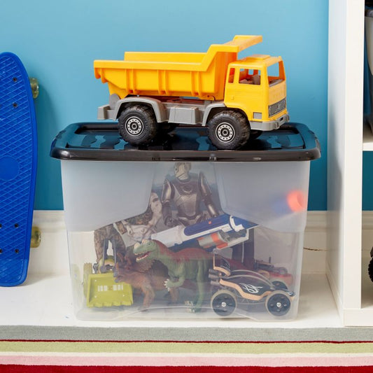 Plastic Storage Box 30 Litres - Clear & Black Curve by Strata