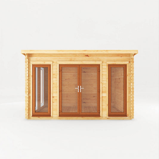 Mercia Studio 10' 11" x 13' 2" Pent Log Cabin - Premium 44mm Cladding Loglap - White UPVC