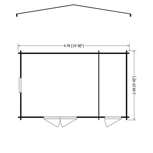 Shire Bourne 15' 6" x 9' 9" Apex Log Cabin - Premium 34mm Cladding Tongue & Groove