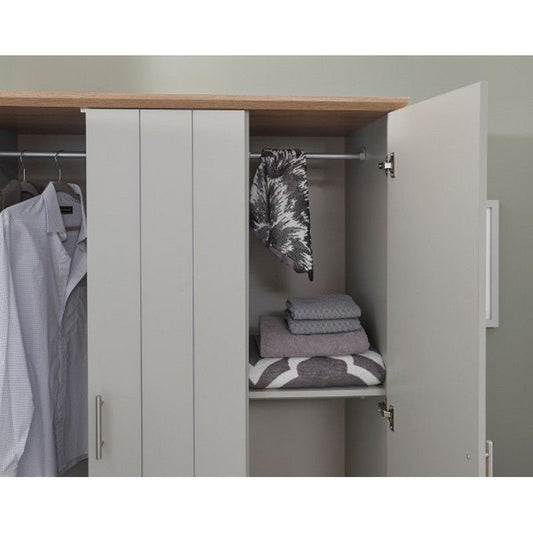 Kendal Tall Wardrobe Grey 3 Doors 1 Shelf 3 Drawers
