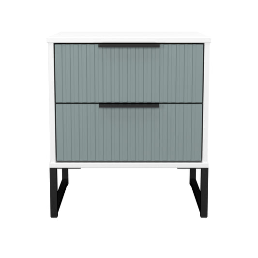 Fluted Bedside Table Teal & White 2 Drawers 60cm