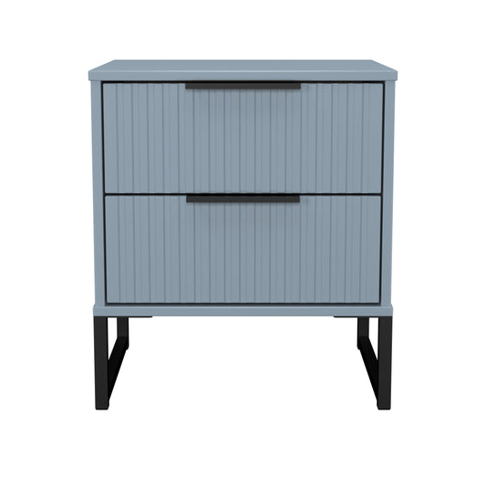 Fluted Bedside Table Light Blue 2 Drawers 60cm