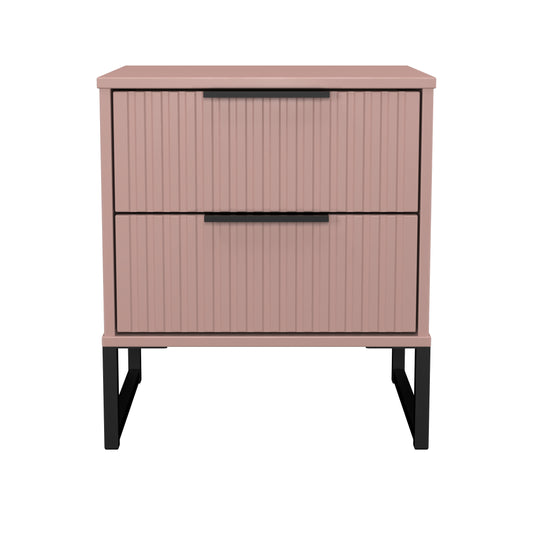 Fluted Bedside Table Pink 2 Drawers 60cm