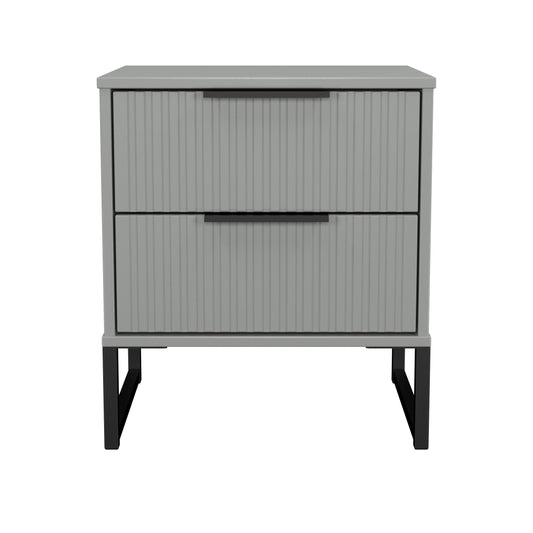 Fluted Bedside Table Grey 2 Drawers 60cm