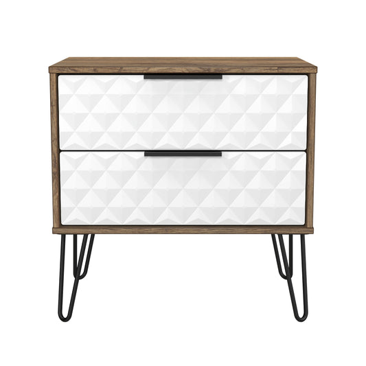 Harlequin Side Table White & Oak 2 Drawers 60cm