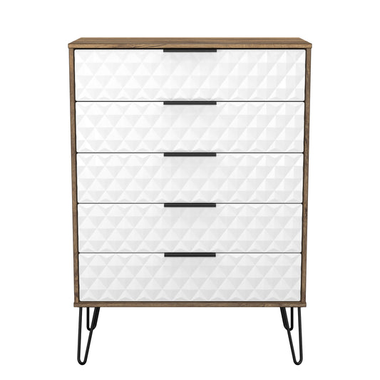 Harlequin Tall Chest of Drawers White & Oak 5 Drawers 109cm