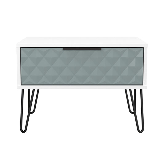 Harlequin Side Table Teal & White 1 Drawer 58cm
