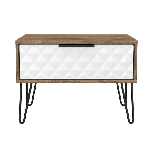 Harlequin Side Table White & Oak 1 Drawer 58cm