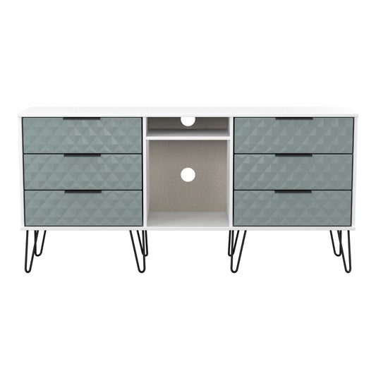 Harlequin Large Sideboard Teal & White 2 Shelves 6 Drawers 152cm