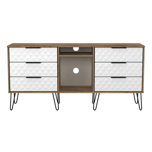 Harlequin Large Sideboard White & Oak 2 Shelves 6 Drawers 152cm