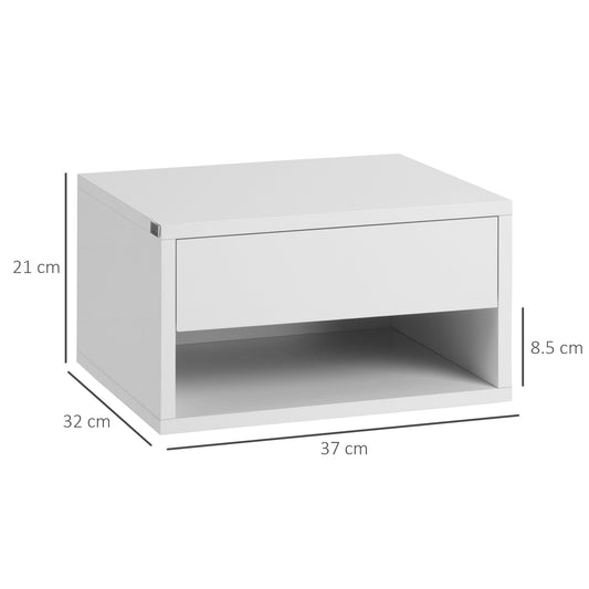Homcom Set of Two Floating Bedside Tables - High Gloss White