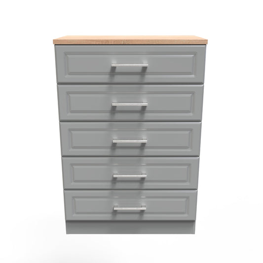 Kent Tall Chest of Drawers Grey & Oak 5 Drawers 108cm