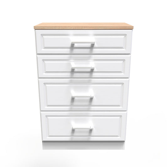 Kent Tall Chest of Drawers White & Oak 4 Drawers 108cm