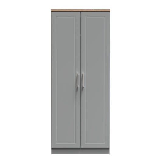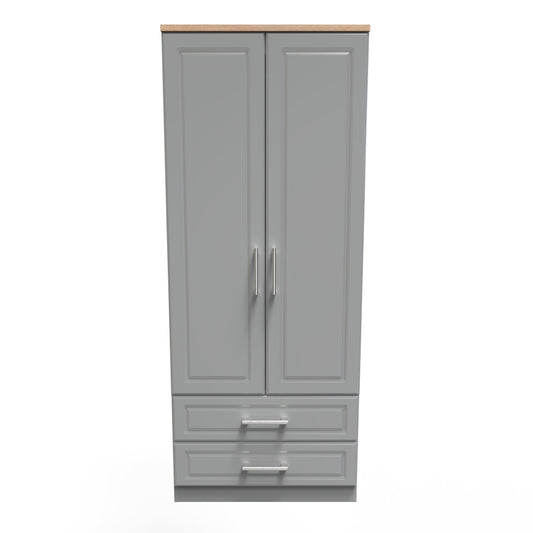 Kent Tall Wardrobe Grey & Oak 2 Doors 2 Drawers 182cm