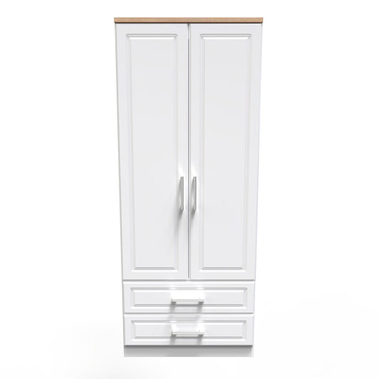 Kent Tall Wardrobe White & Oak 2 Doors 2 Drawers 182cm