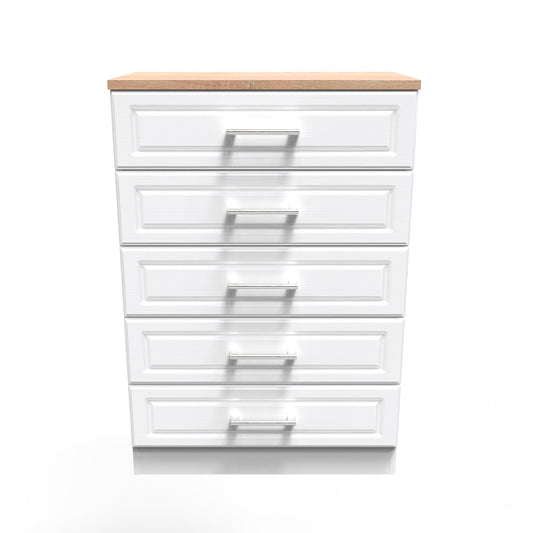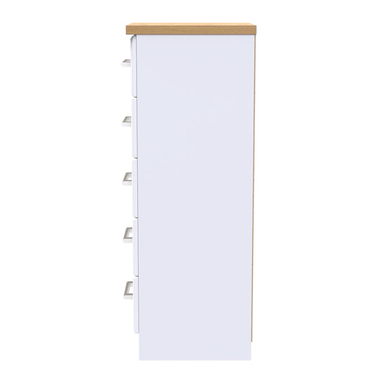 Kent Tall Tallboy White & Oak 5 Drawers 108cm
