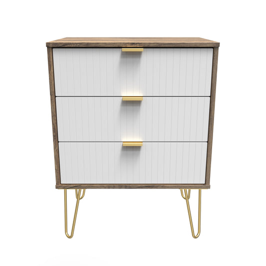 Linear Chest of Drawers White & Vintage Oak 3 Drawers 40cm