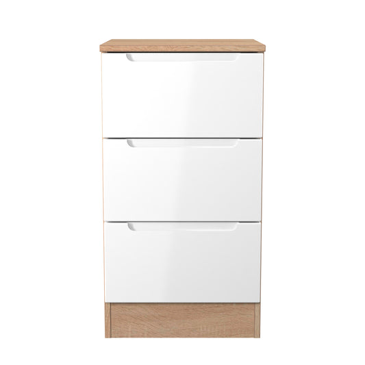 Milan Bedside Table White & Oak 3 Drawers 70cm