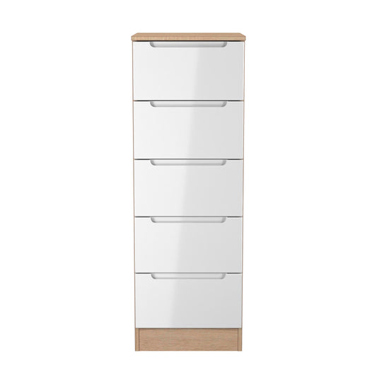 Milan Bedside Table White & Oak 5 Drawers 108cm