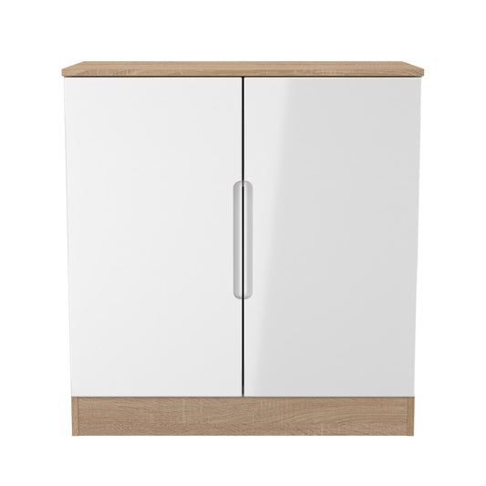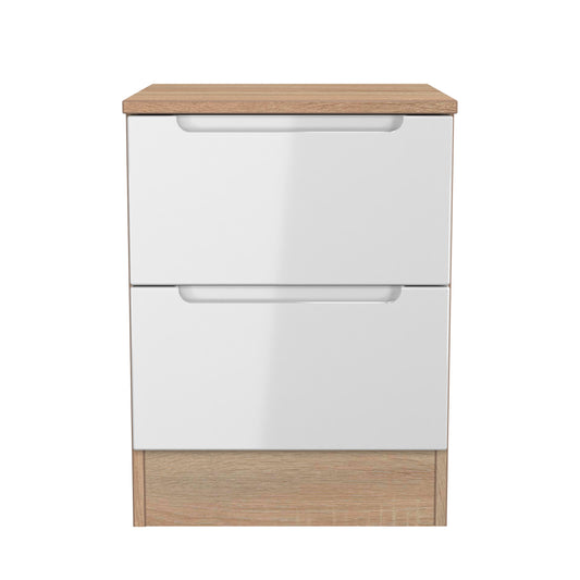 Milan Bedside Table White & Oak 2 Drawers 51cm