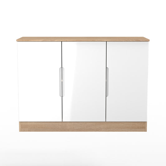 Milan Large Sideboard White & Oak 3 Doors 2 Shelves 110cm