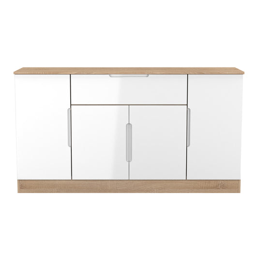 Milan Large Sideboard White & Oak 4 Doors 2 Shelves 1 Drawer 144cm