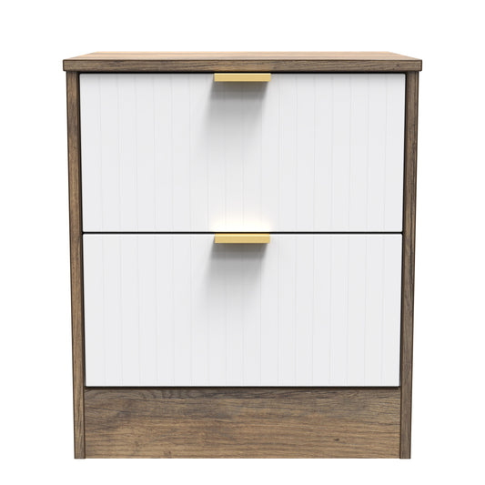 Nashville F Bedside Table White & Vintage Oak 2 Drawers 45cm