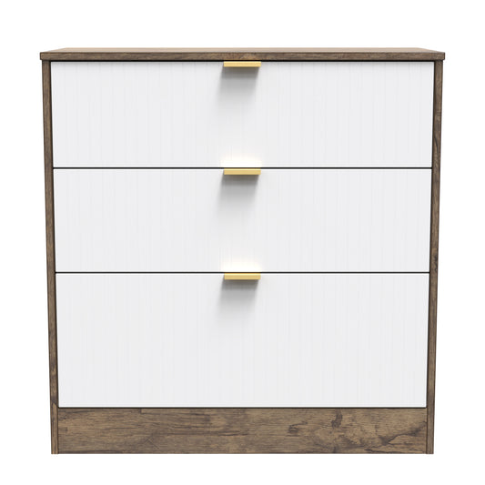 Nashville F Chest of Drawers White & Vintage Oak 3 Drawers 77cm
