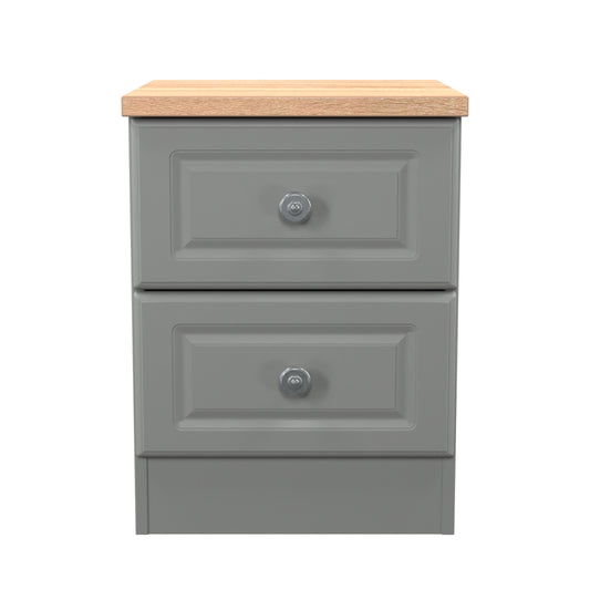 Norfolk Bedside Table Grey & Light Oak 2 Drawers 37cm