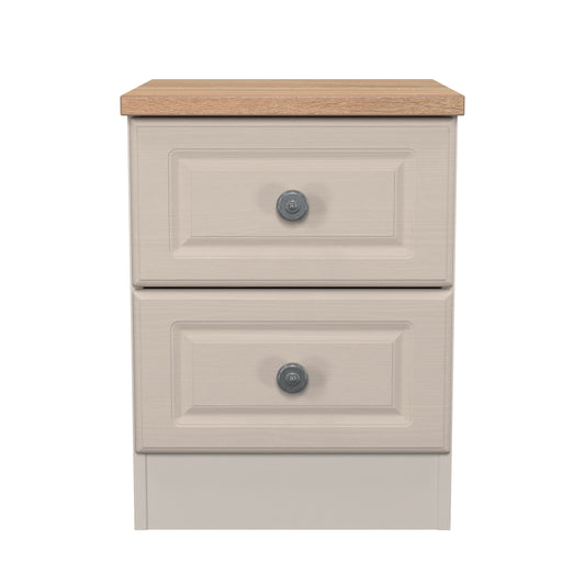 Norfolk Bedside Table Off-white & Light Oak 2 Drawers 37cm