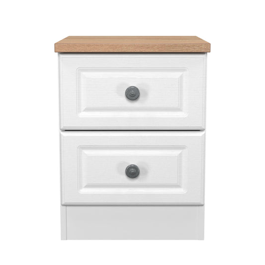 Norfolk Bedside Table White & Light Oak 2 Drawers 37cm