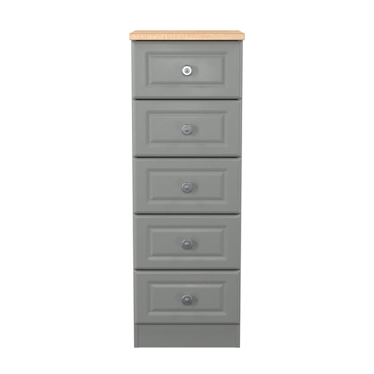 Norfolk Bedside Table Grey & Light Oak 5 Drawers 37cm