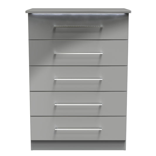 Paris Tall Chest of Drawers Grey 5 Drawers 77cm