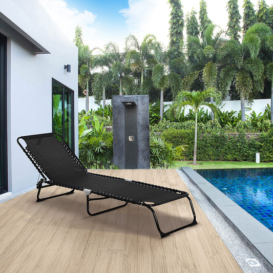 Outsunny Folding Sun Lounger Beach Chaise Chair Garden Reclining Cot Camping Hiking Recliner with 4 Position Adjustable