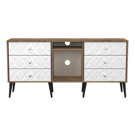 Pixel Large Sideboard White & Vintage Oak 2 Shelves 6 Drawers 152cm