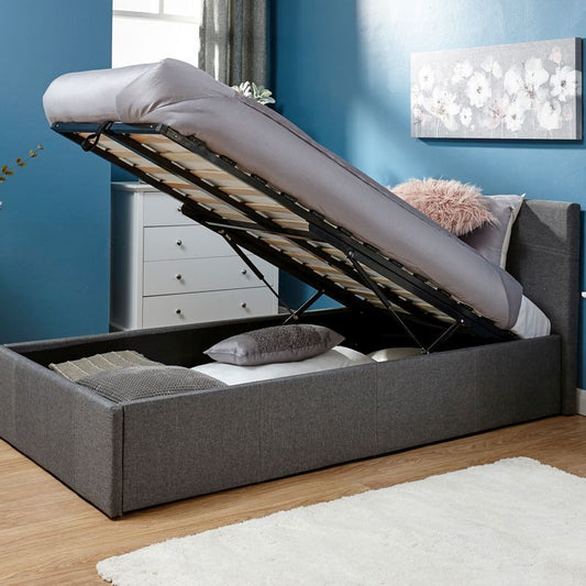 Winston King Size Ottoman Bed Fabric Grey 5 x 7ft