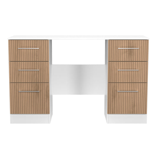 Worcester Desk White & Light Oak 6 Drawers 125cm