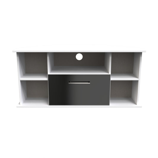 Worcester Corner Corner TV Unit Black & White 5 Shelves 1 Drawer 110cm