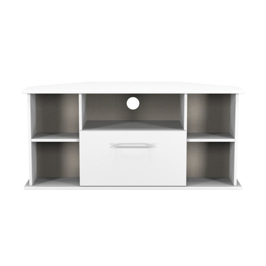 Worcester Corner Corner TV Unit White 5 Shelves 1 Drawer 110cm