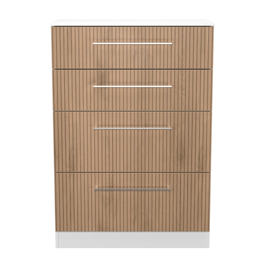 Worcester Tall Chest of Drawers White & Light Oak 4 Drawers 74cm