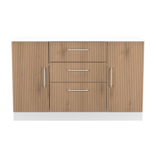 Worcester Large Sideboard White & Light Oak 3 Doors 1 Shelf 110cm