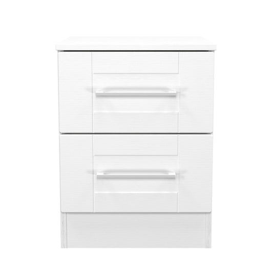York Bedside Table White 2 Drawers 37cm