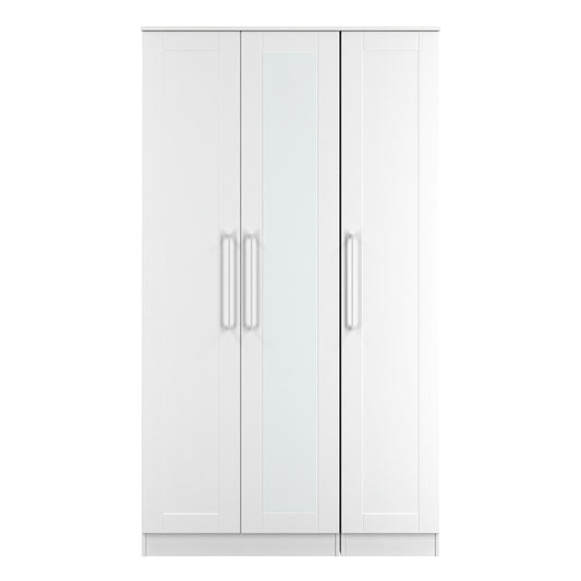 York Tall Mirror Wardrobe White 1 Shelf 111cm