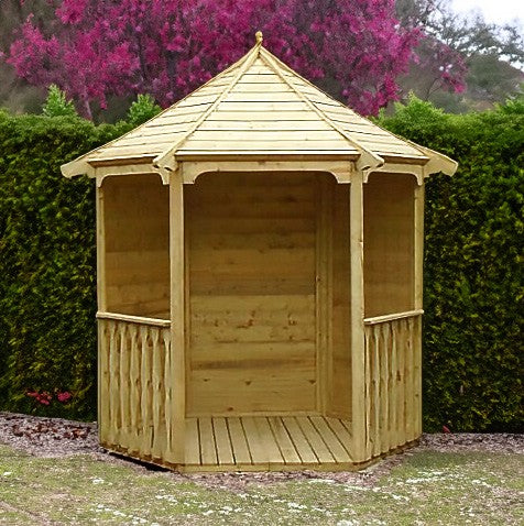 Scandinavian Redwood Garden Arbour by Charles Taylor - 3 Seats Grey Cushions