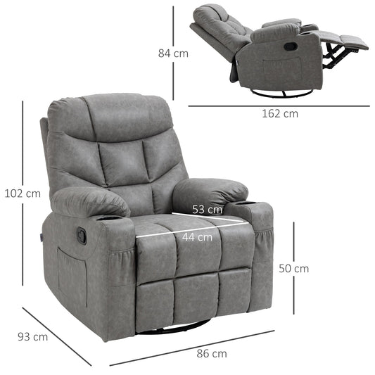 Recliner Armchair Massage Swivel PU Leather Reclining Chairs with Adjustable Leg Rest