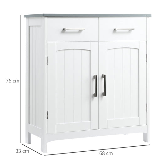 kleankin 75x60cm Freestanding Bathroom Storage Cabinet Unit w/ 2 Drawers Cupboard Adjustable Shelf Metal Handles Traditional Style White