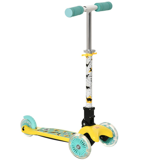Homcom Foldable Scooter for Kids with 3 Wheel Adjustable Height Flashing Wheels