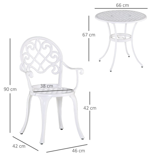 3-Piece Garden Bistro Set Cast Aluminium Round Table with 2 Chairs for Outdoor Patio Balcony White