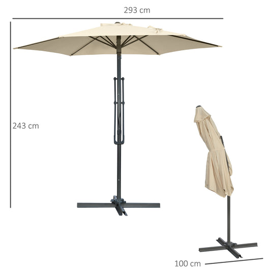 Outsunny 2.7M Garden Banana Parasol Cantilever Umbrella With Crank Handle And Cross Base For Outdoor